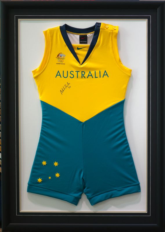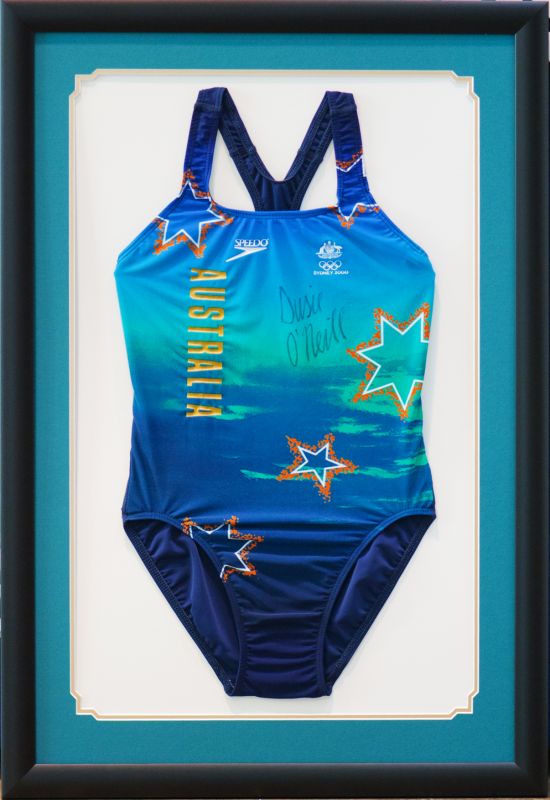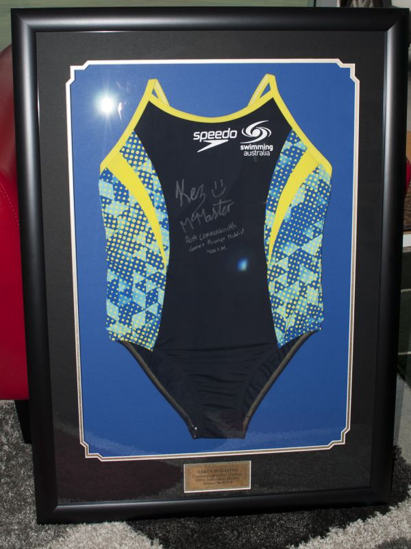 Signed swimsuit framed with plaque |