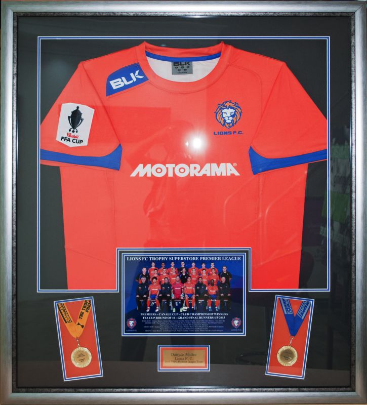 Jersey with medals and photos framed |